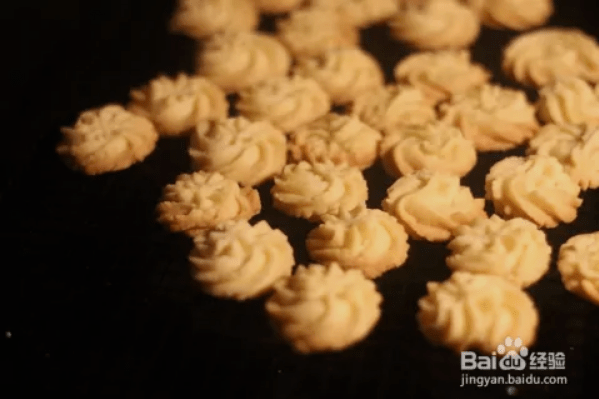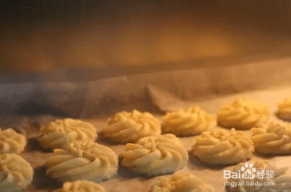 把烤盤放在烤箱中間,加熱180度和160度15分鐘,關(guān)火后悶5分鐘。烘焙時間取決于擠壓的圖案的大小,建議首次烘焙時10分鐘內(nèi),邊緣微微上色即可。如果是4層烤箱,從下往上放在第二層。